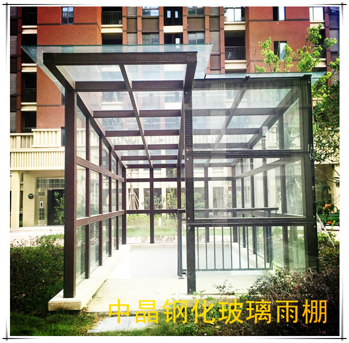 现代新型楼群小区,建筑配套设施越来越讲究其实用性和美观性,小小的雨棚也起了大大的变化,钢化玻璃雨棚因具有很好的透光性如今被广泛使用。泰州中晶金属制品有限公司在生产锌钢护栏的基础上扩大经营,最新出品的钢结构钢化玻璃雨棚已经被省内很多建筑工程采用。