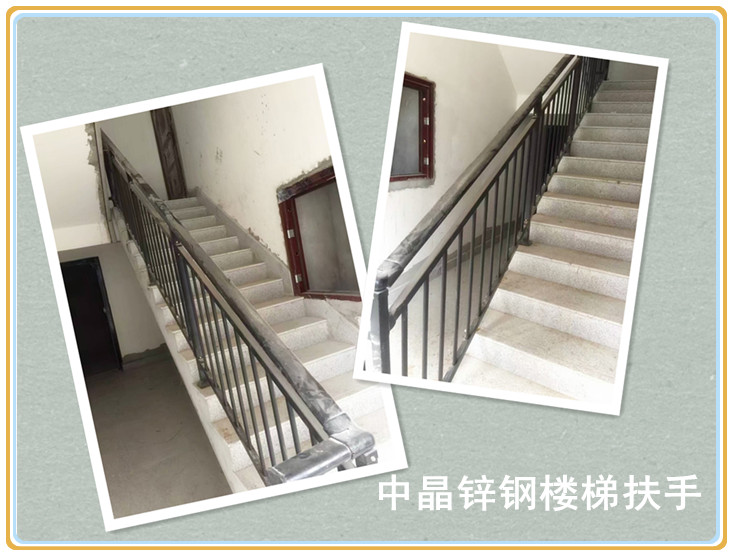 中晶公司专业生产的热镀锌楼梯扶手,基材采用结构牢固、耐腐蚀性极强的专用型材,在钢体表面喷涂一层附着力极强的热性工程耐候性高分子树脂保护层(厚0.5-1.0mm),使钢体完全与空气、水分及酸碱物质隔离,达到耐磨、抗紫外线强,防腐、防锈、防褪色的效果。其外观饱满亮泽,色彩多样,使用寿命长,不需上漆维护、易清洁。